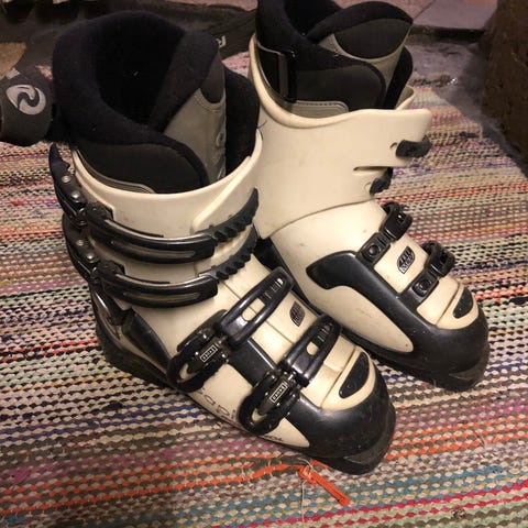 Rossignol monot on ostettu vuonna 1995. Niille tuli aikoinaan käyttöä noin 30 päivää. Ovat lojuneet käyttämättöminä varastossa lähes 25 vuotta. Koko 27,5. Sukset tulee kaupan päälle. Ainoastaan nouto Kuopiossa.