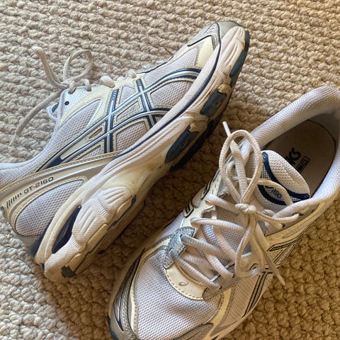 Kuvan mukaiset Asics merkkiset lenkkarit. Koko 39.5 (25 cm). Kulumaa (kts kuvat). Nouto Haapalehdosta. Postitus kuluja vastaan.