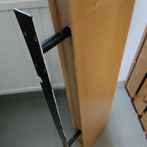 Hyväkuntoinen valkoinen, pieni ja matala, lattialle laitettava hylly.