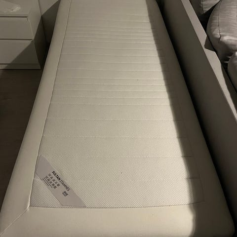 Erittäin hyväkuntoinen sänky. Sängyn jousitus pehmeä,patja taas napakka. Ollut vierassänkynä. Mukaan tulee patjansuojus ja valkoinen lakana joka peittää koko rungon. Tammiset jalat. Ei kotieläimiä. Sänky puhdas ei tahroja. Vain Nouto Vuosaari. Mmm