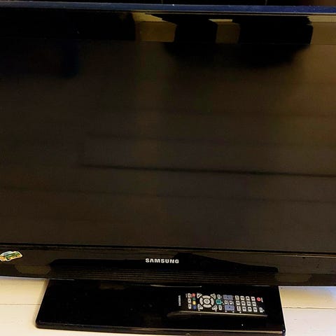 Finluxin toimiva pikku telkkari. Toisesta reunasta hieman maali lähtenyt ja kaukosäätimen pohja on tahmainen. Vain nouto!
