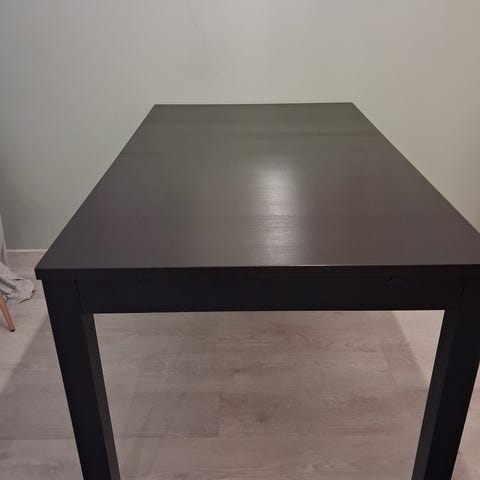 Myydään hyväkuntoiset ja ehjät Ikean Bjursta jatkettava ruokapöytä ja 4kpl Ikean Gilbert tuoleja. Pöydän halkaisija 115cm, pituus jatkettuna 165cm.