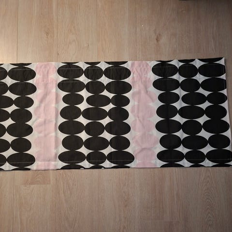 Kangas on himmeästi kiiltävää satiinia, paksuhko kangas, ei paista läpi.