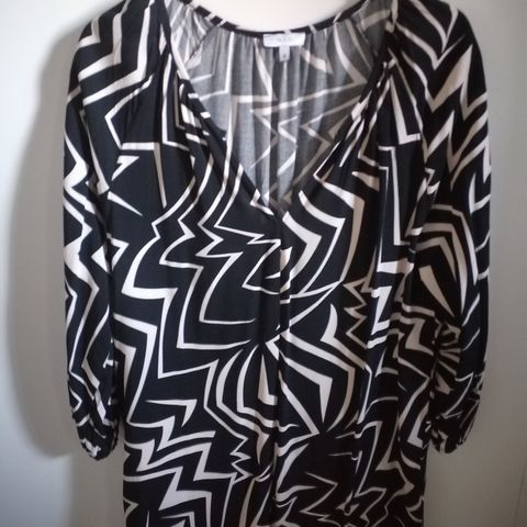 Uudenveroinen tunika/mekko, mittoja: kainalo-kainalo 53 cm (joustaa). Malli Finnwear +. Hihoissa koristenapit, 3/4 hihat. Reilua kokoa.