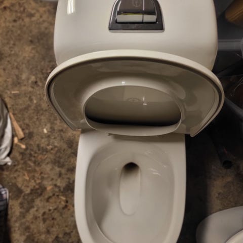 Kova soft close kansi, josta kannen palautusjouset mennyt. Ringin kanssa tai pelkkä rinki laskeutuu vielä hitaasti.