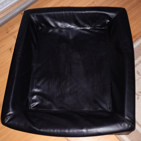Muutama viikko sitten ostettu koiran peti. Mitat 80x50cm. Koira ei välittänyt eli ei ole paljon käytetty. Pientä tahraa ja purema jälkeä ehti tulla ja niistä kuvat. Päällisen saa irti ja pestyä. Havainnollisuuden vuoksi kuvassa 3,5kg kleinspitz. Peti menee kyllä vähän isommallekin koiralle mainiosti.