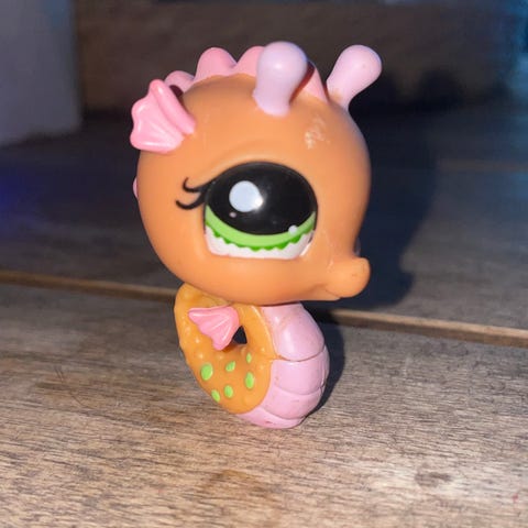 Littlest Pet Shop kala lelu, väriltään keltainen ja vihreä. Pieni muovinen lelu, jossa isot silmät ja koristeelliset evät. Sopii keräilyyn tai leikkeihin.