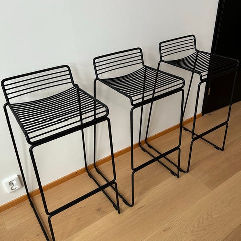 Myydään valkoinen Hay About A Stool baarituoli tammijaloilla.