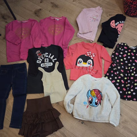 Hupparitakki, flanellikauluspaita, pitkähih.paita ja farkkujen tyyliset housut. Hyväkuntoiset vaatteet.