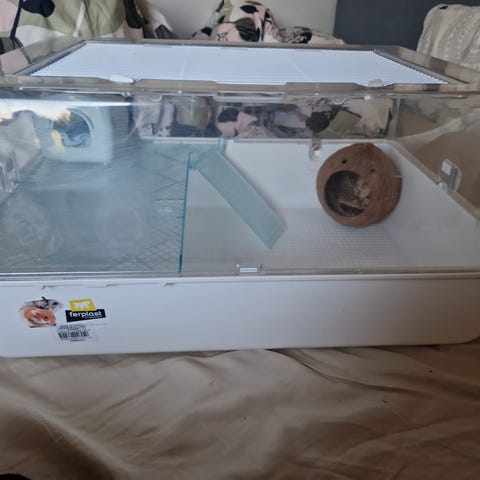 Metallinen pieneläinhäkki, jossa punainen muovipohja. Häkki käyttänyt afrikkalainen kääpiösiili, joten soveltuu pienille lemmikeille, kuten hamstereille tai gerbiileille. Häkissä on metalliverkko, joka tarjoaa hyvän ilmanvaihdon ja näkyvyyden.
