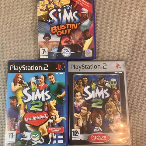Electronic Arts The Sims PlayStation 2 peli. Sisältää alkuperäisen pelin sekä lisäosan The Sims Ryntää raitille, sekä myös the sims 2 pelin.