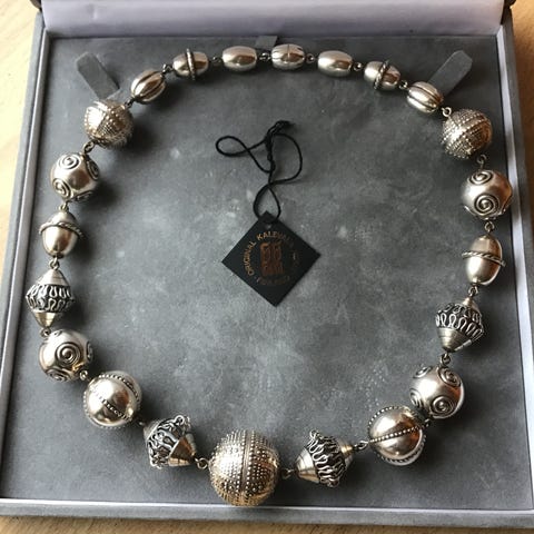 Käytössä ollut Kalevalan hopeinen Halikon kääty, jonka kokonaispituus on 71,5 cm, ilman rannekorua 50,5 cm. Rannekorun, jonka pituus 21 cm, voi irrottaa käädystä. Rannekorussa sekä käädyssä samat leimat: kk, kruunu, 925, P8. Postivakuutettu lähetys Manner-Suomeen 33 euroa. Nouto Kuopiosta keskustasta. En käytä ToriDiiliä.