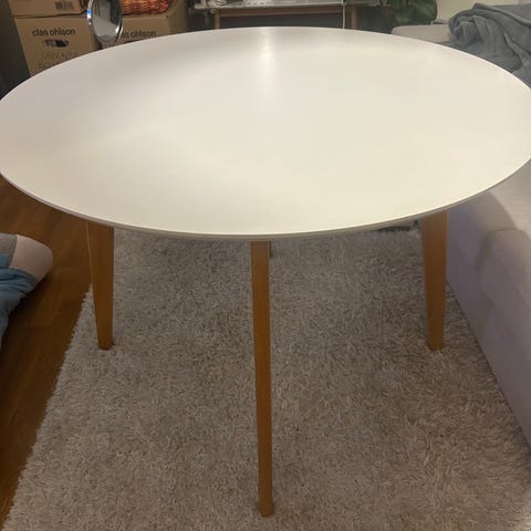 Hakusanat: puujalat, Paketoitava, Valmistaja, pyöreä pöytä, valkoinen pöytä, pöytä, käytetyt huonekalut, pöydät, 110cm, ruokapöytä, keittiö, keittiöpöytä, ruoka, ruokailu, taso, keittiön, huonekalu, huonekalut