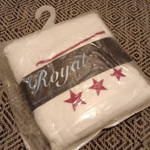 vaaleanharmaa mukavan pehmeä kylpytakki. Koko XL. Selän puolella muutama pieni tahra, lähtee varmaan kunnon pesussa. Muuten on siisti ja puhdas.