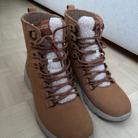 Skechersin talvikengät, koko 38, musta väri. Kengät on suunniteltu talvikäyttöön ja ne tarjoavat suojaa kylmiltä olosuhteilta.