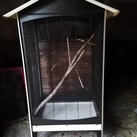 Myydään kaunis lintuhäkki, mukaan saa tarvikkeet mitkä kuvassa. Pohjan saa vedettyä sivusta ulos pesua varten. Mieluiten nouto.