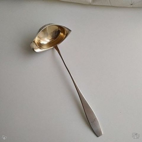 Vintage pieni kastikekauha, alppa, pituus 18 cm, kauhan halk.8 cm.