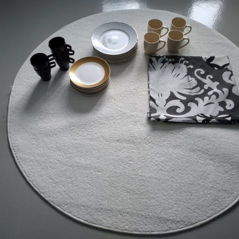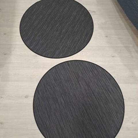 IKEA KNOTT pyöreä matto, väri keskiharmaa. Siistikuntoinen, hajusteeton ja eläimetön koti