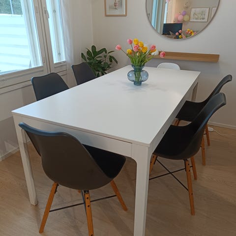 Myydään 2kpl Jyskin valkoisia ruokapöydän tuoleja. Mielellään molemmat tuolit kerralla, hinta 30€. Jos haluat vain yhden tuolin, hinta on 15€/kpl.