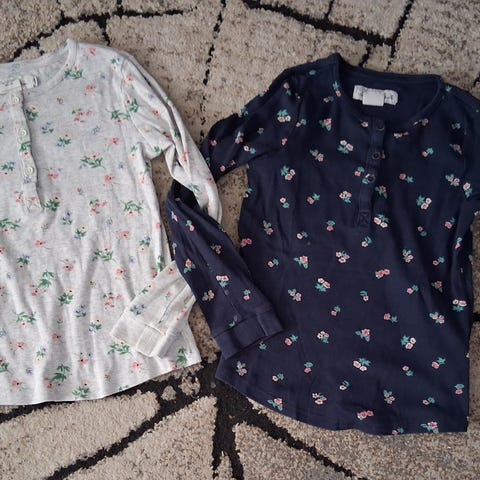 Noshin pitkähihaisia ribbipaitoja koossa 122/128. Kunto vaihteleva, kun pidetty eri määrä, joten pieniä ikitahroja löytyy, mutta kaikki paidat ehjiä ja ihan ok arkikäyttöön.
