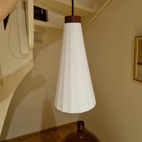 Valaisin tippunut lattialle ja kupu on mennyt rikki. Itse valaisin toimii ja kaupasta voi ostaa uuden kupun (en ole saanut itse aikaiseksi). Kuvassa rikkinäinen kupu.