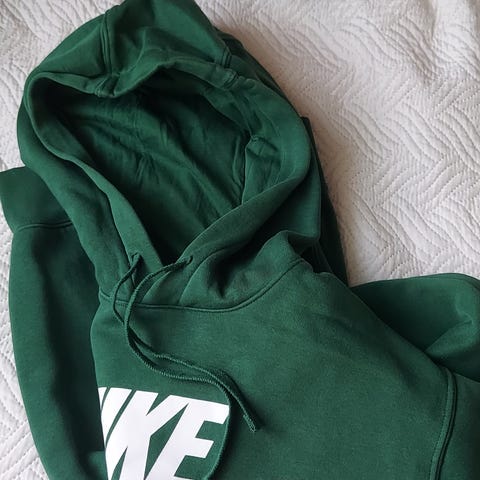 Niken tummanvihreä huppari. Koko M.
