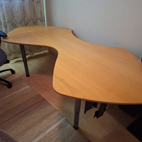 Rakennettu seisomatuolikäyttöön, pöydän korkeus 98cm.