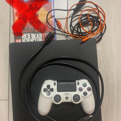Elämää nähnyt PS4. Ostettu toimivana mutta eihän se sitten lukenut levyjä eikä oma osaaminen riitä levyaseman korjaamiseen. Muuten toimii kyllä. Pari ruuvia puuttui virtalähteestä ja edellinen omistaja on taittanut yläpeltiä. Pelkkä konsoli, ei johtoja tai muuta.