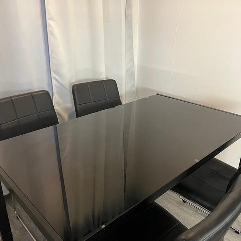 Myynnissä kuvassa näkyvä pieni lasinen ruokapöytä ja tuolit! Voi myös ostaa erikseen!
