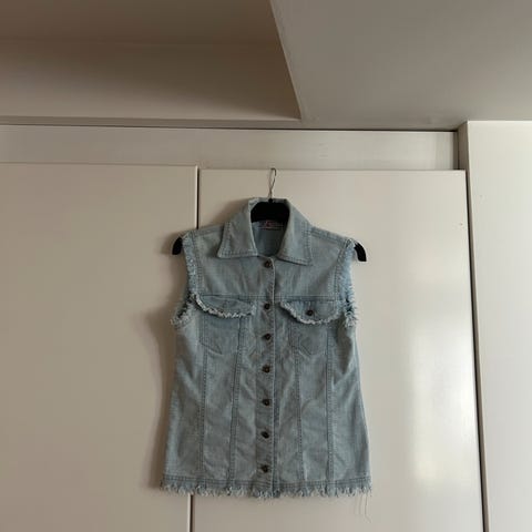 Pellavasekoitekangasta oleva ruskea vintage liivi koossa 34.