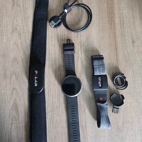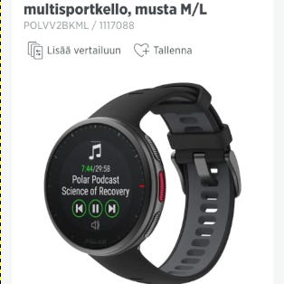 Tästä treenikello Polar Vantage V2 sykevöineen ja lähetin osineen.