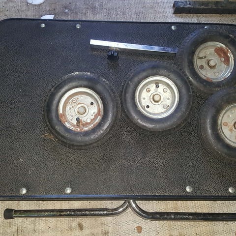 Myydään pieni ja taitettava pöytä, jossa on kantokahva. Pöydän koko 60x35cm. Säädettävä teleskooppijalka ( 60-90cm ) on sinkillä päällystettyä metallia. Pöydän kansi on valmistettu vedenpitävästä vanerista ja päällystetty korkealaatuisella kumilla, alumiinireunalla. Pöydän paino 6kg.
