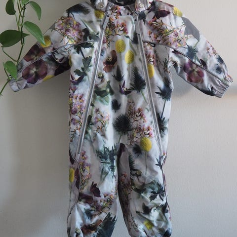 Oikein siistissä kunnossa oleva Molo Pyxis toppahaalari. Polvissa ja pepussa on vain aavistus pehmentymää, heijastimissakaan ei juurikaan kulumaa. Aiemmalla hetken käytössä ollut, meilläkin vain noin kuukauden ajan kun kävikin jo pieneksi.