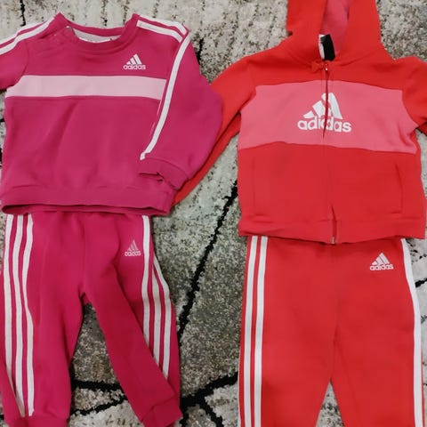 Käytettyjä mutta edelleen hyväkuntoisia siistejä paitoja. Kahdessa paidassa (vihreä ja beige) kokomerkintä 86 mutta vastaa enemmän 74/80. Adidas koko 74. Beigessä paidassa pieni mustikkatahra.