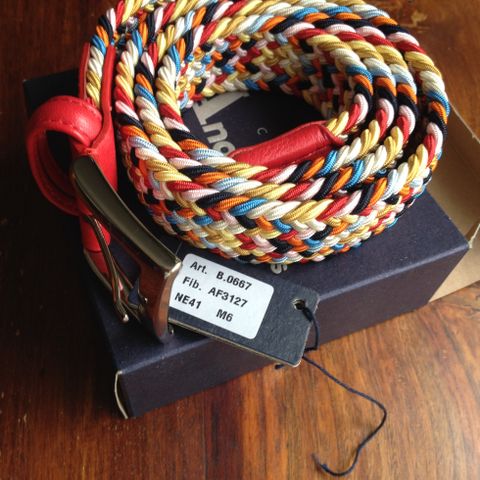 Laadukas nupukkinahkainen vyö uudenveroisessa kunnossa. Leveys 2.5 cm pituus päädystä keskireikään 90 cm.