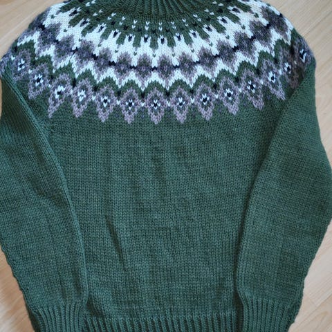 Käsintehty villapaita, koko L/XL, . Kai- kai 59cm, olka -helma 70cm. Käyttämätön. Lankana Novitan konepestävä 7 veljestä-lanka. 80% villaa.