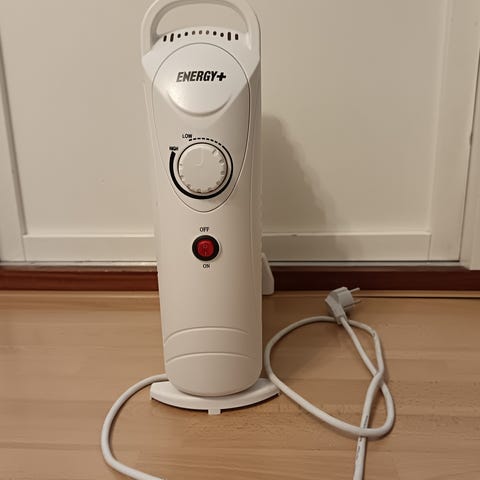 Lämmittimessä on termostaatti. Lämmitin on tukeva ja pyörät helpottaa siirtelyä.