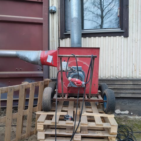 Hyväkuntoinen purunpoistosysteemi lämmön talteenotolla. Ohjauspaneeli kuuluu mukaan