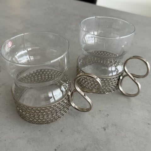 Hyväkuntoiset Iittalan kuumajuomalasit (kirkas) 23cl, pidikkeillä.