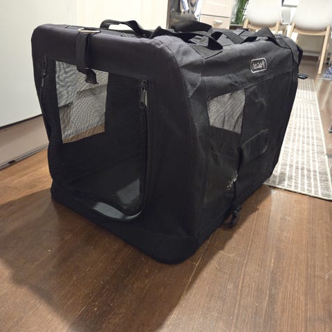 Kokoontaitettava kangashäkki teräsrungolla. Koko M 60 x 42 x 42. Helppo ja nopea pystyttää ja pakata. Pyöristetyt vahvistetut kulmat. Kolme ovea, päällä, pitkällä sivulla ja päädyssä. Vedenkestävä sopii sisä- ja ulkokäyttöön.