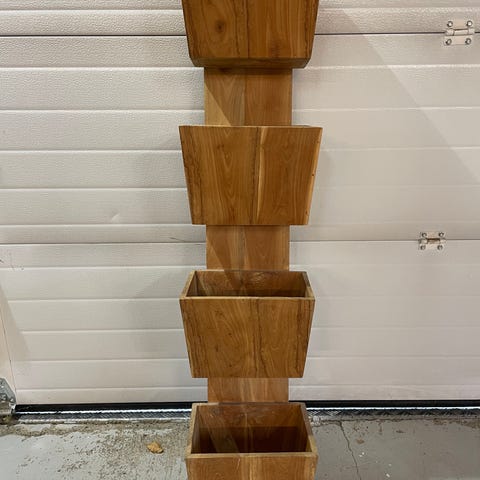 Hakusanoja: kaareva persoonallinen uniikki kokopuu puinen pyökki punertava puu vintage retro art deco kaari kaareva pyöreä avohyllykkö senkki lipasto isohko iso tyylikäs persoonallinen artdeco 1990 90’s koivu koivuinen hylly olohuoneen moderni round sivupöytä konsolipöytä kahvipöytä eteisen eteiseen