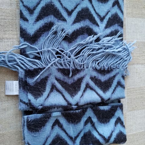 Polan uusi keltainen huivi, kuvassa kaksin kerroin taitettuna. Materiaali on 100 % akryylia. Postitan.