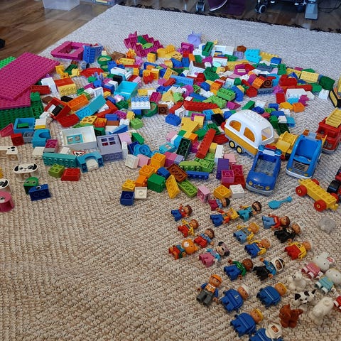 50l laatikollinen lego duploja. Hyvässä kunnossa, paljon leikitty. Mukana auto, paljon junan vaunuja, eläimiä....