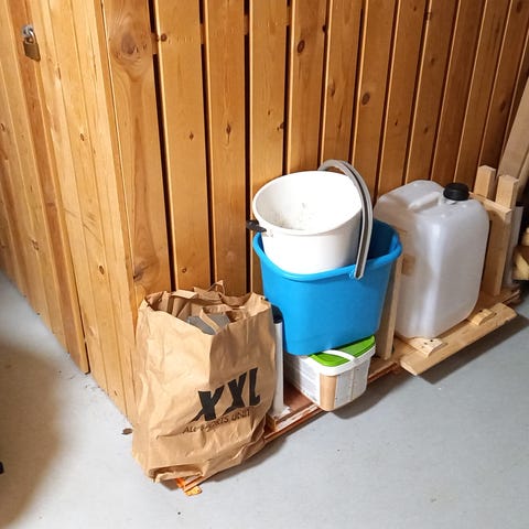 Annetaan vajaa pussi lämmityspellettejä. Noin 16kg jäljellä.