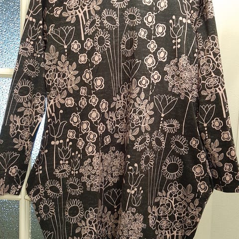 Pari kertaa käytetty kaunis versonpuodin tunika. Korkea kaulus, taskut, helmassa resori. Koko L, kuin uusi. Pohjaväri tummansininen.