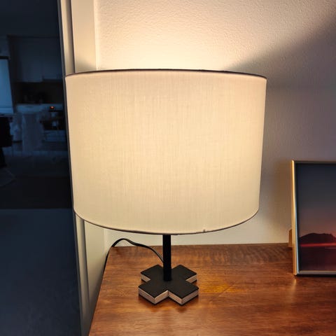 Hyvä, uuden veroinen 45 cm korkea Massive pöytälamppu. Väri siniharmaa.