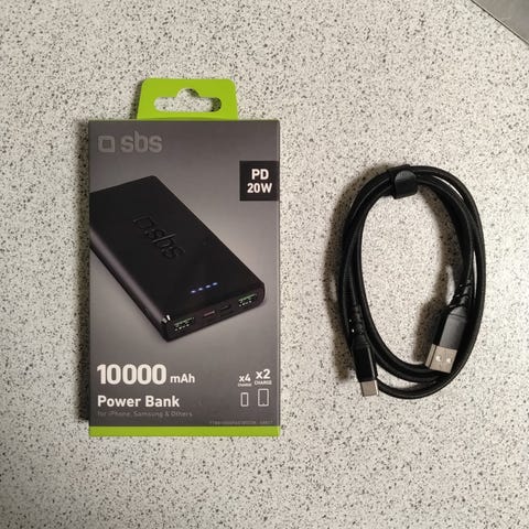 SBS Power Bank -varavirtalähde 10 000 mAh (PD 20 W), Musta