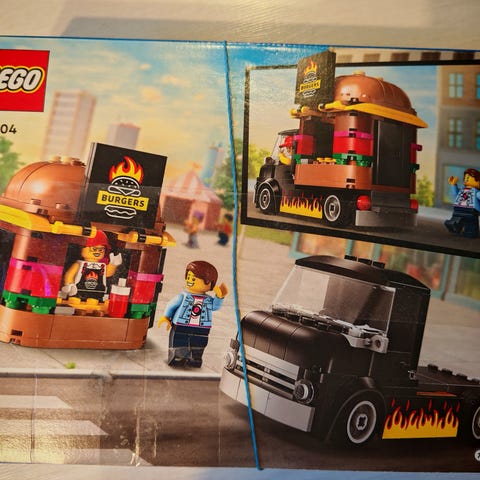 LEGO City 60404 hampurilaisauto. Setissä on kaikki osat ja minifiguurit tallessa. Voin myös purkaa osat pusseihin jos haluaa. Ohjekirjat tulevat myös mukana.