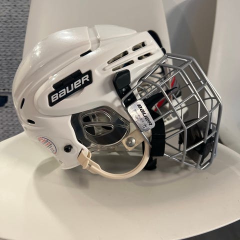 Myydään Bauer jääkiekkokypärä, joka on kokoa S. S-koko on päänympärysmitoille 52cm-57cm