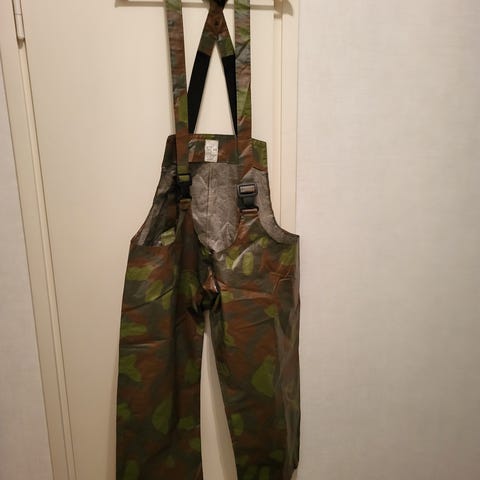 Oy Kerno Ab, sadehousut ja sadetakki vihreä, koko XL (58-60), lappu sanoo toista, mutta käyttäjä n. 190+ cm, neppi kiinnitys, huppu nyörillä, heijastimet, PVC/PA, kunto K3 (1-5), lahkeensuissa kulumaa + muuta pientä käytönjälkeä.